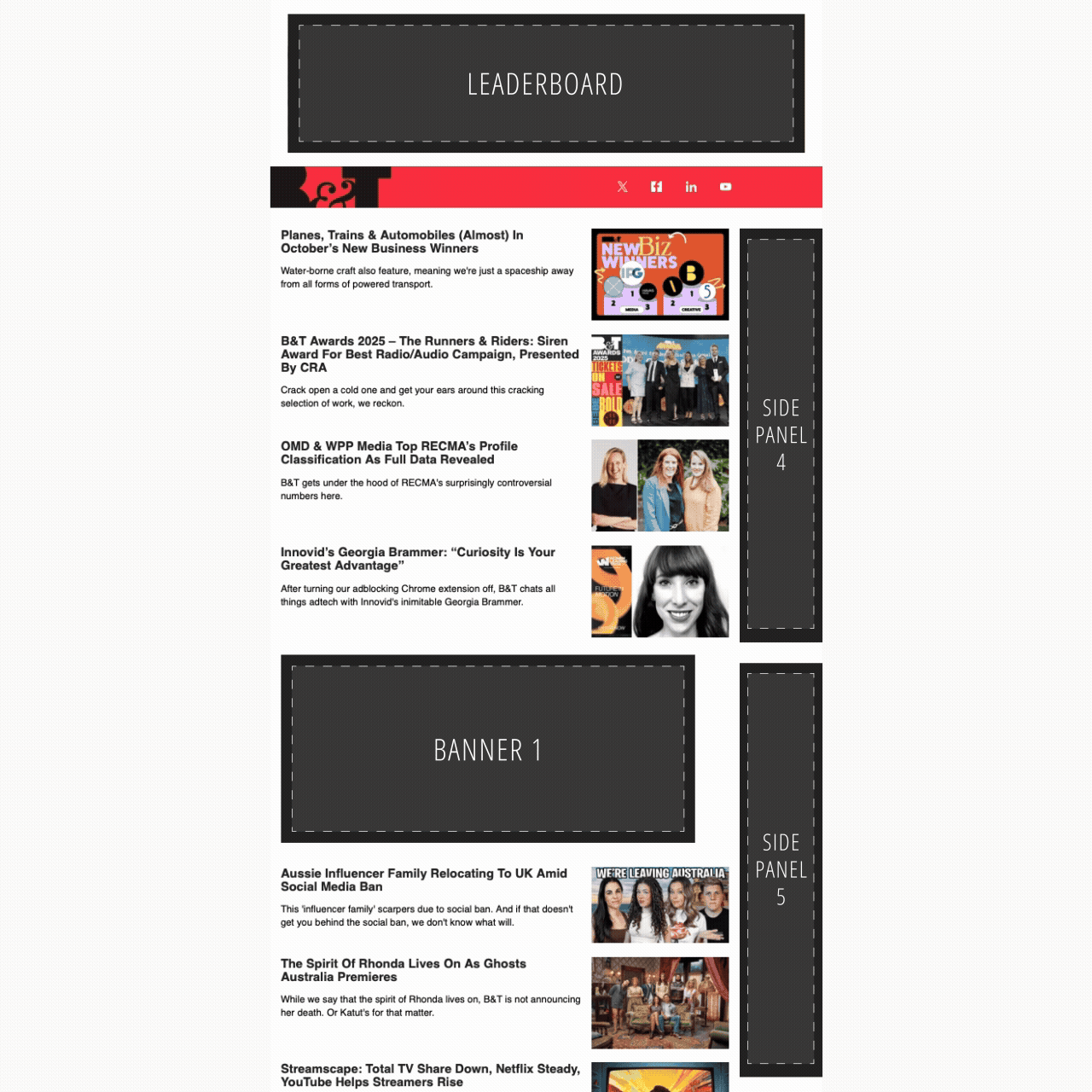 The B&T website attracts over 200,000 unique users each month generating over 400,000 monthly page views. Engage this audience and grow awareness for your brand by utilising display, video or make a splash with a takeover.