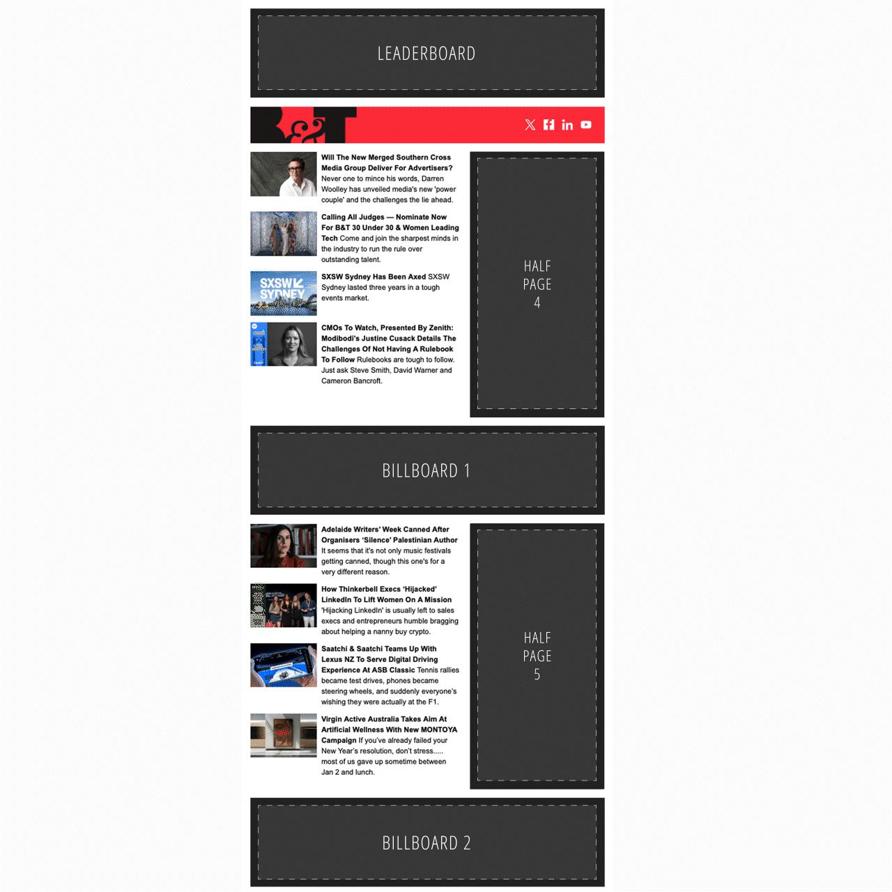 Online, B&T provides daily intelligence on the advertising, marketing and media industries within Australia and beyond. Our distinctive voice and sense of humour make our content stand out, while our daily newsletter list is one of the largest and most influential in the industry.